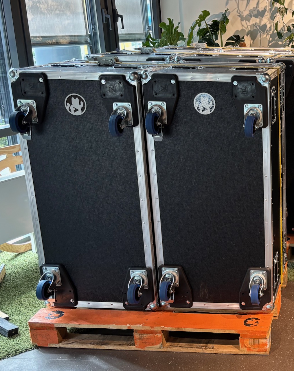 The lecture room set 2.0 aka. “Case 2.0” consists of two 120x60 cm TRANSFlex road cases on a standard EUR-pallet.